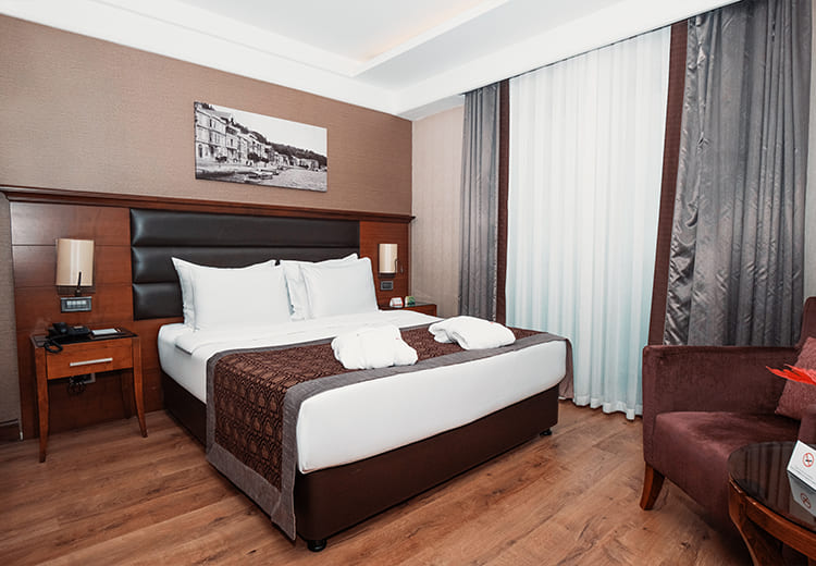 Şık tasarımlı odalar ve konforu tamamlayan modern olanaklar.